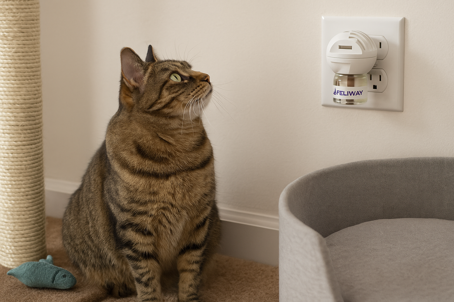 Ticari olarak üretilen feromon difüzörleri, bu doğal kimyasalları ortama yayarak kedinin daha sakin, güvende ve rahat hissetmesini sağlar. Özellikle Feliway Classic gibi ürünler, klinik çalışmalarda stres ve agresyonu azalttığı kanıtlanmış feromon bileşenleri içerir (Feliway Clinical Studies).